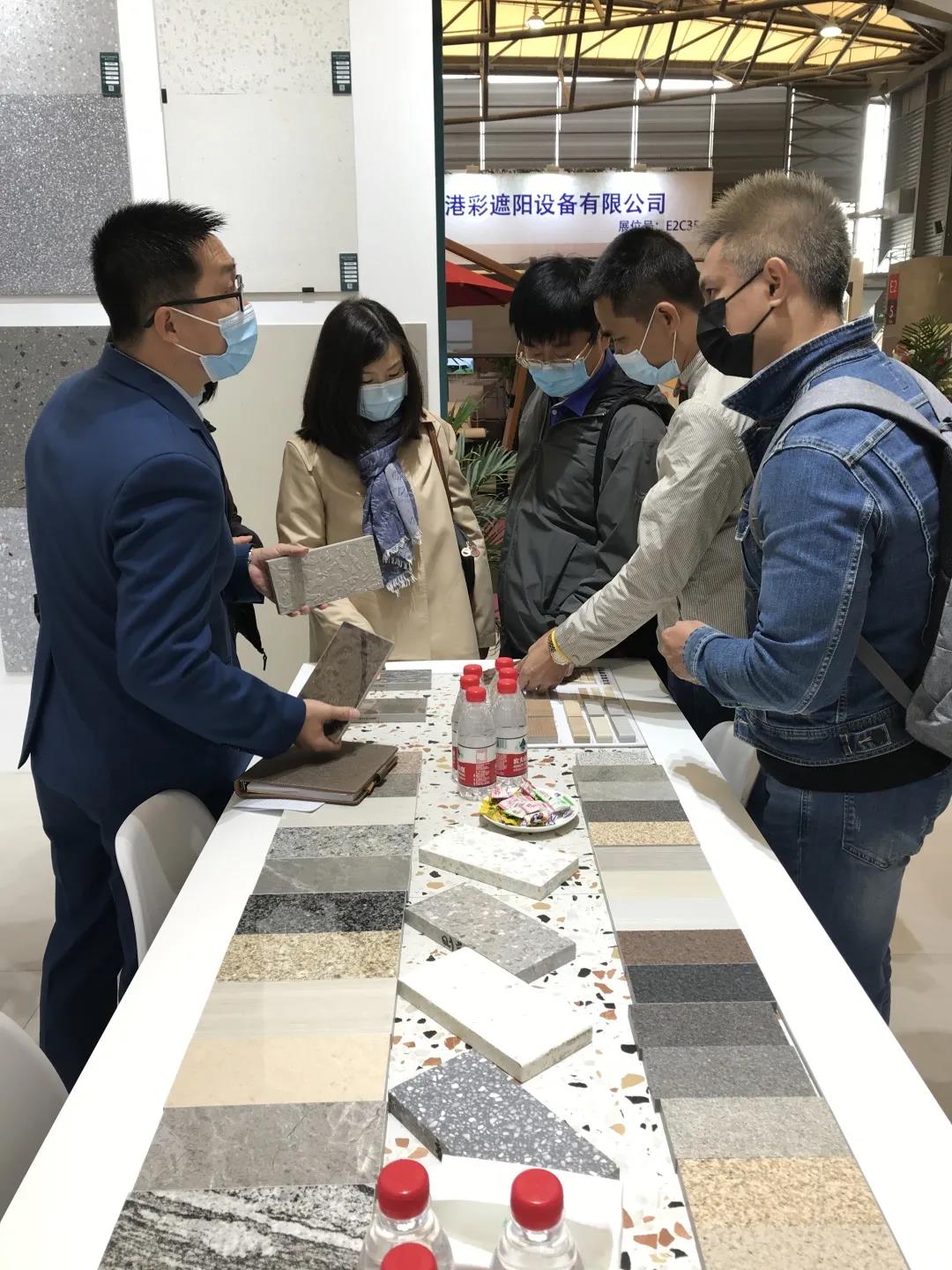 此次上海國際酒店工程設計與用品博覽會(huì ),佛諾倫莎瓷磚重點(diǎn)展出了18mm高光面戶(hù)外園林厚磚、水磨石瓷磚、水泥瓷磚等現代仿古磚系列,迎來(lái)全球各地的客商朋友參觀(guān)和合作洽談。